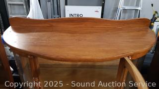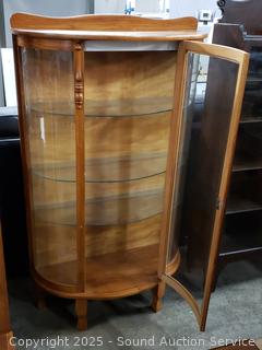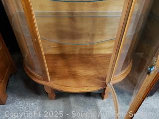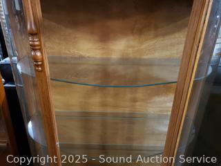 Lot #0015: Oak Lighted Curved Glass 3-Shelf Bookcase