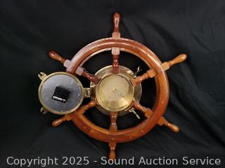 Lot #0160: Ships Wheel Brass Quartz Clock