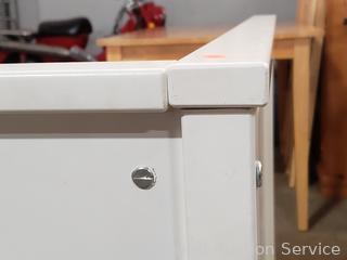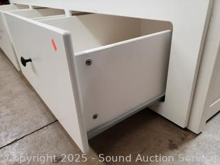 3 drawers with roller drawer guides. Some scuffs, wear to finish. Overall great condition. 32.5" H x 78" W x 40.5" W.
