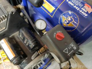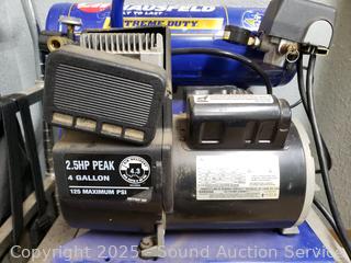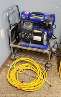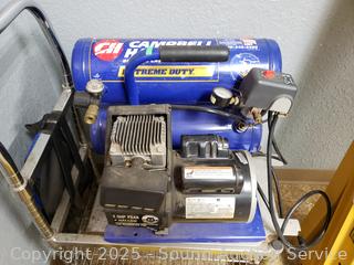 Lot #0251: Campbell Hausfeld 4-Gallon Air Compressor w/Hose, Sprayer & Cart