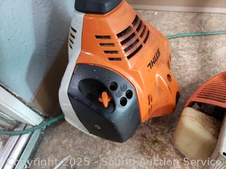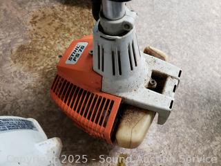 Echo SRM-2500 (has compression, can't get started, choke is stuck in place), Stihl FS75 (has compression, can't get started, not priming), Stihl FS70RC (tarted & ran briefly, starter rope broke off, too much power!).