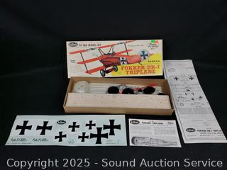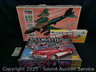 German Fokker DR-I Triplane Balsa Wood Model Kit, 57 Corvette 1:16 scale model kit, B-52 Stratofortress 1:72 scale plastic model kit. Unknown completeness.