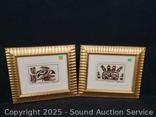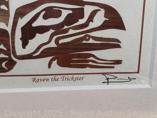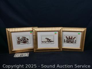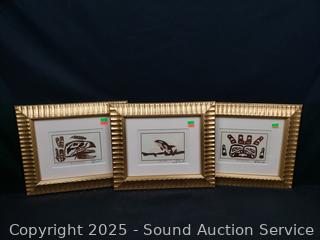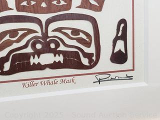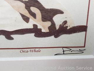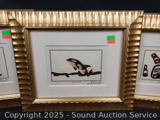 Framed, matted with glass. "Orca Whale", "Killer Whale", "Raven the Trickster". 11.5" x 13.5". Refer to photos for more details.