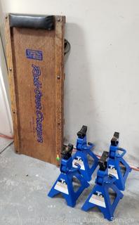 Lot #0230: 4 3-Ton Jack Stands & Mechanics Creeper