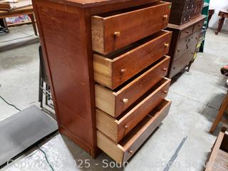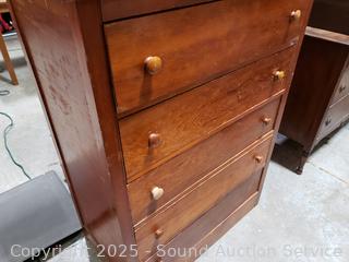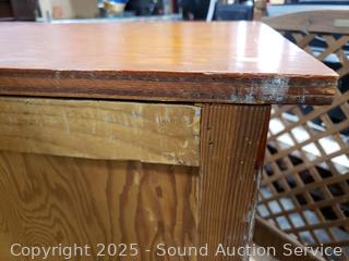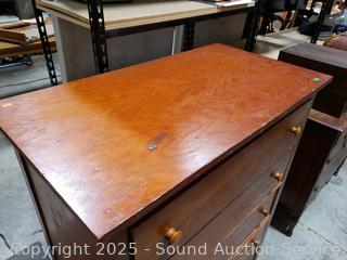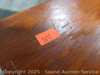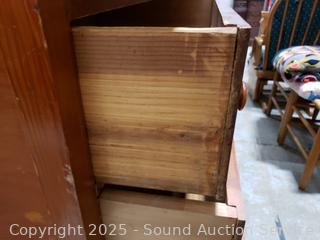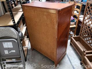 Various scuffs, wear to finish. 48" H x 35.5" W x 19.5" D. Solid wood & plywood construction.