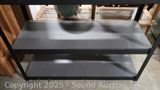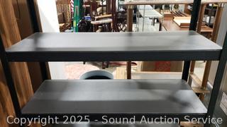 Gray laminate shelves. 72" H x 48" W x 17.5" D. Don't see any major issues.
