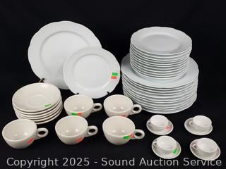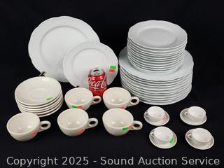 12 Couture salad plates, 12 Couture dinner plates 9one is chipped), 11pc RLC embossed teacups & saucers, 8pc miniature tea set. Refer to photos for more details.