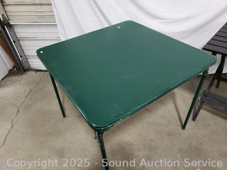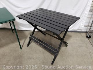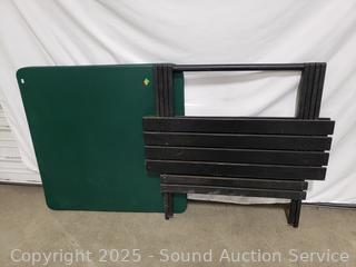 Lot #0036: Black Finish Wood Folding Table & Green Folding Card Table