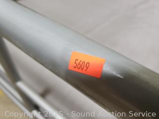 Cover has some damage, missing some pieces, hardware not original. Some old pieces have broken off the side rails. Approx. 34" to 46" H x 56" W x 75" long rails.