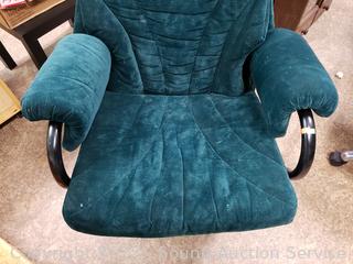 Lot #0264: Green Microfiber Upholstered Black Metal Gliding Rocker