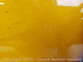 One string is broken, some stickers on fretboard. Don't see any other major issues. Approx. 27" L x 10.5" W.