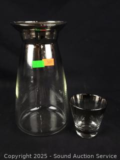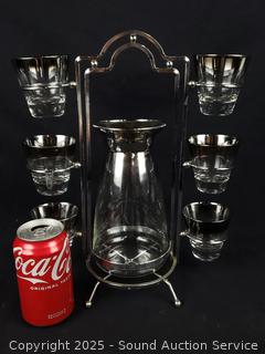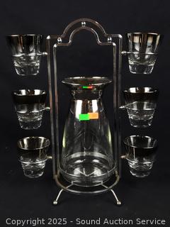 Lot #0101: Silver Flash Bar Ware Caddy w/Glass Pitcher & 6 Glasses
