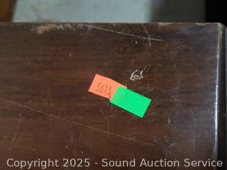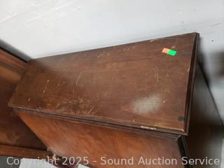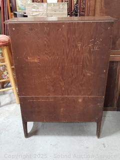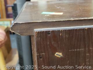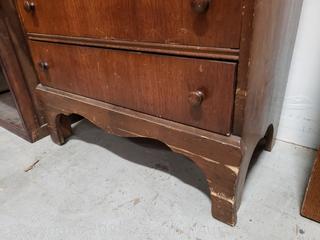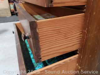Approx. 41" H x 29.5" W x 15.5" D. Various scuffs, scratches in finish. All wood construction, dovetail joinery.