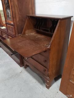 Lot #0021: Vintage Mahogany Drop Front 3-Drawer Secretary Desk