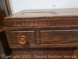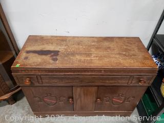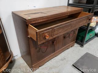 Various scuffs, scratches, wear to finish. Approx. 34" H x 45" W x 18.25" D.