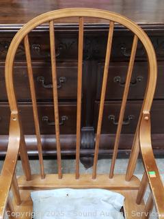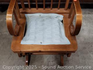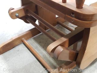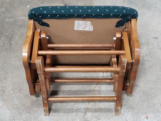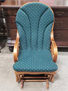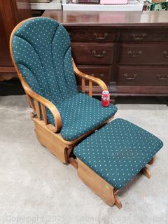 Lot #0033: Wood Green Upholstered Gliding Rocker w/Ottoman