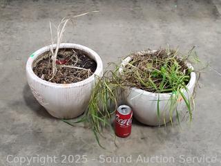 Lot #0288: 2 Glazed Pottery Planter Pots w/Soil