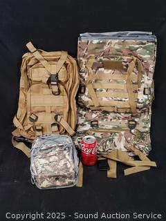 Lot #0206: 2 Tactical Backpacks & Pouch