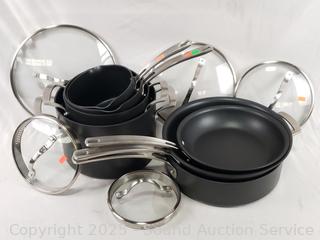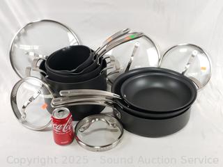 Lot #0264: 7 Kirkland Hard Anodized Non-Stick Pots & Pans w/5 Lids