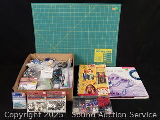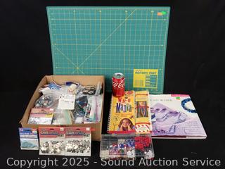 Lot #0247: Assorted Bead Crafting Supplies & Rotary Mat 17" x 23"