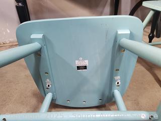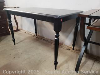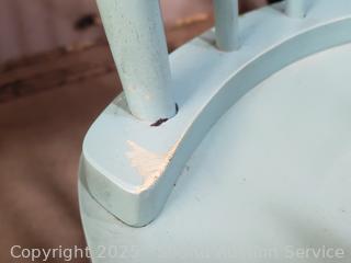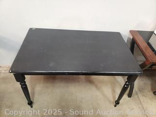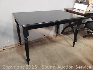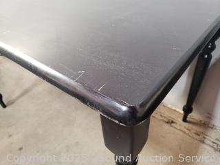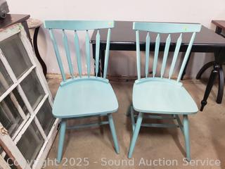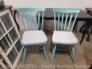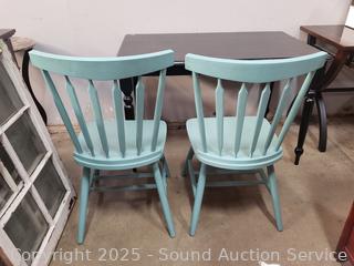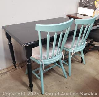Lot #0027: Black Painted Dining Table w/2 Turquoise Painted Chairs
