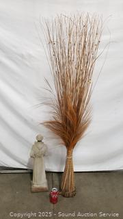 Lot #0047: Composite St. Francis Statuary & Bundle of Reeds Decor
