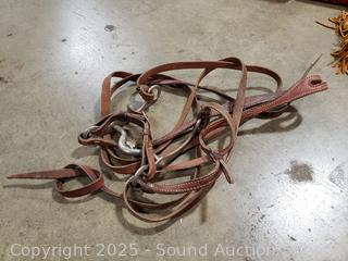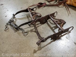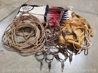 Lot #0029: Equestrian Saddle Pads, Blankets, Spurs, Bit, Lead Ropes, Leather Chaps, etc - UPDATED