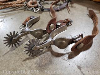 Update... removed stirrup, belly strap and spurs from lot and put it with the saddle it goes to.