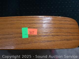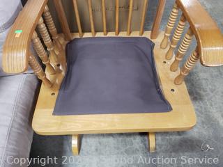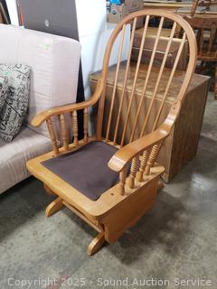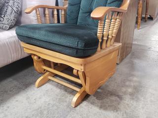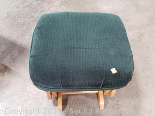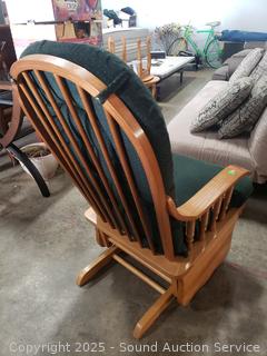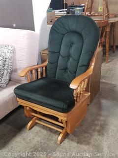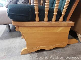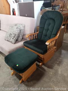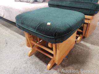 Lot #0006: Green Upholstered Oak Finish Wood Gliding Rocker w/Ottoman