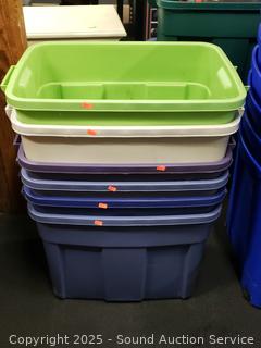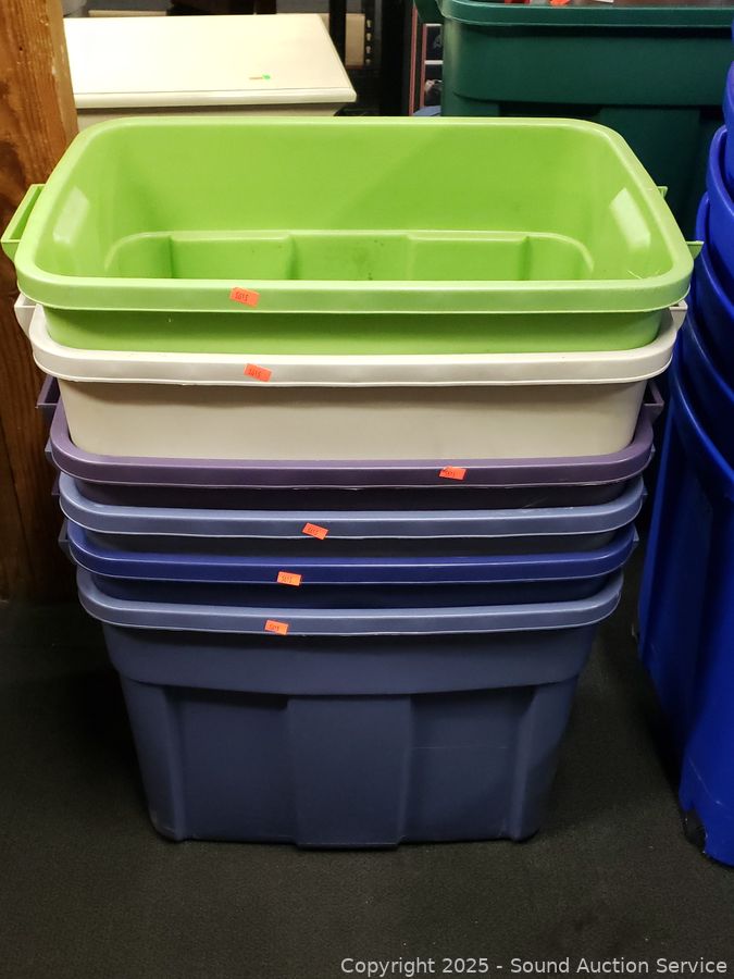 Lot #0240: 6 Rubbermaid Totes w/Lids
