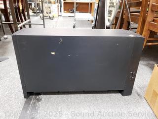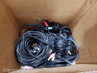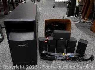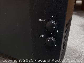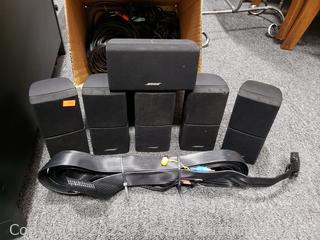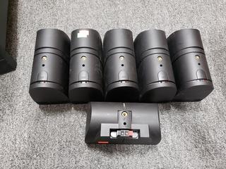 Small speakers all work, the sub unsure how to test, input is massive ribbon cable, no power cord. 1 center, 5 satellite speakers & subwoofer.