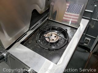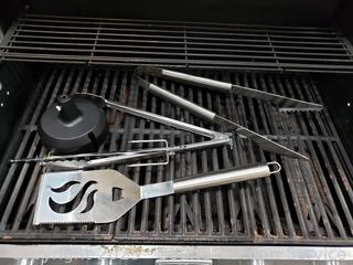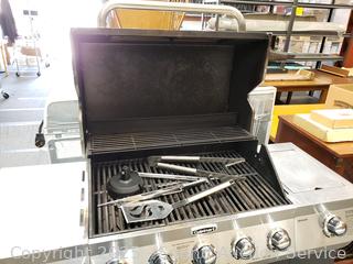 All igniters are working, comes with propane tank, cover, some grilling tools. Signs of wear from use. Could use a proper cleaning.