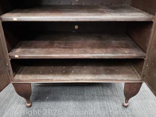Very well made! Unique piece! 3 shelves. 71" H x 41" to 47" W x 24.5" to 27" D.