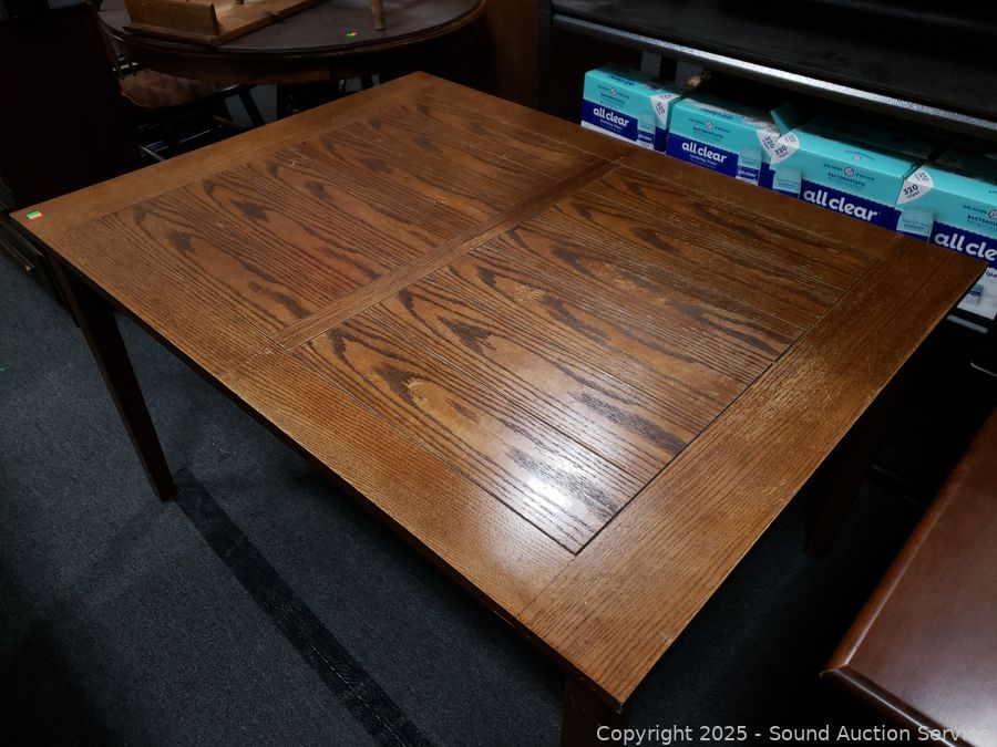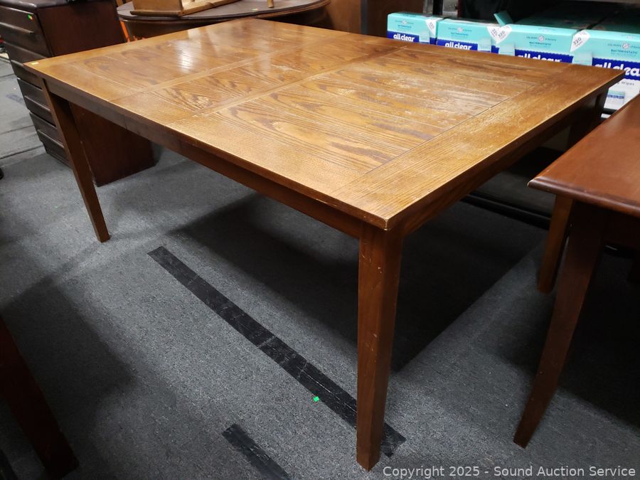 Lot #0058: Oak Finish Dining Table w/1 Leaf