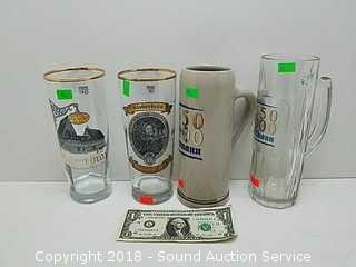 Lot #0032: (4) German Beer Glasses & Mugs