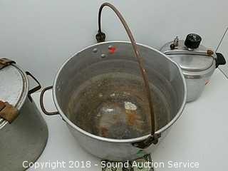Lot #0100: Aluminum Pressure Cookers & Cauldron