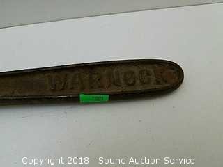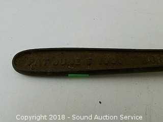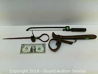Strap wrench is a Warnock, patented 1900. No markings on the file saw. Pick tool looks to be hand wrought.