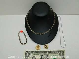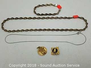 Lot #0028: Beautiful Sterling Necklaces, Bracelet & GF Pins