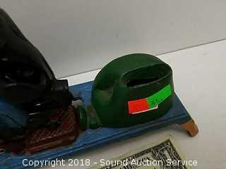 Tons of old rustic antique items & tools! Includes, Antique Buffet, Waterfall Dresser, Tiger Oak Dresser, Old Steamer Trunks, Hand Tools, Power Tools, Saws, Antique 1906 Safe, Wood Block Pulley's, Vtg. oil Heater, Trading Cards, Early 1900's Ephemera & Photos, Old Knives, WWII Military Items, Coin Banks, New Elec. Stove Top, Antique Philco Record Player, Vises, Pony Keg, Bull Horns, Horseshoes & So Much More!!!