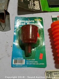 Lot #0147: Fuel Tank Funnels, Lawn Mower Blade & More