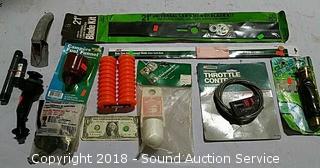 Includes: drain king, camper fuel funnel, throttle control cable, bow saw replacement blade, and viscometer.