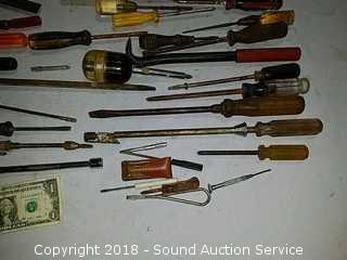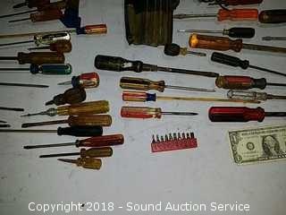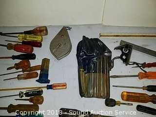 Lot #0148: Large Lot of Various Screwdrivers & Rulers