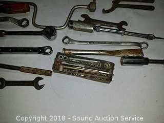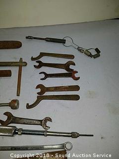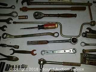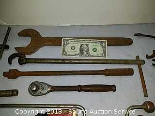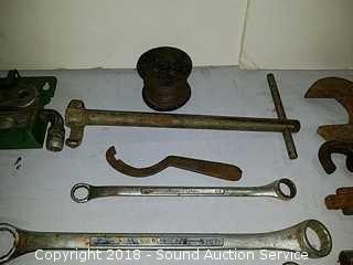 Tons of old rustic antique items & tools! Includes, Antique Buffet, Waterfall Dresser, Tiger Oak Dresser, Old Steamer Trunks, Hand Tools, Power Tools, Saws, Antique 1906 Safe, Wood Block Pulley's, Vtg. oil Heater, Trading Cards, Early 1900's Ephemera & Photos, Old Knives, WWII Military Items, Coin Banks, New Elec. Stove Top, Antique Philco Record Player, Vises, Pony Keg, Bull Horns, Horseshoes & So Much More!!!