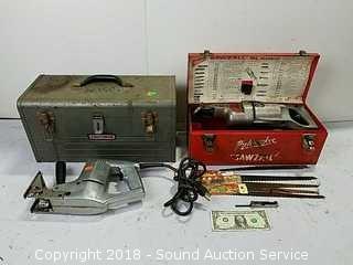 Tons of old rustic antique items & tools! Includes, Antique Buffet, Waterfall Dresser, Tiger Oak Dresser, Old Steamer Trunks, Hand Tools, Power Tools, Saws, Antique 1906 Safe, Wood Block Pulley's, Vtg. oil Heater, Trading Cards, Early 1900's Ephemera & Photos, Old Knives, WWII Military Items, Coin Banks, New Elec. Stove Top, Antique Philco Record Player, Vises, Pony Keg, Bull Horns, Horseshoes & So Much More!!!