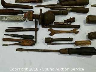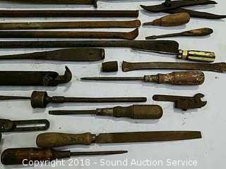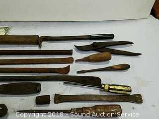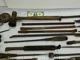 Lot #0124: Rustic Hammers, Pry Bars, Screwdrivers & More
