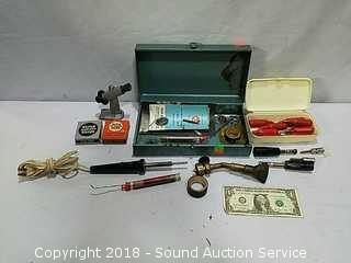 Tons of old rustic antique items & tools! Includes, Antique Buffet, Waterfall Dresser, Tiger Oak Dresser, Old Steamer Trunks, Hand Tools, Power Tools, Saws, Antique 1906 Safe, Wood Block Pulley's, Vtg. oil Heater, Trading Cards, Early 1900's Ephemera & Photos, Old Knives, WWII Military Items, Coin Banks, New Elec. Stove Top, Antique Philco Record Player, Vises, Pony Keg, Bull Horns, Horseshoes & So Much More!!!
