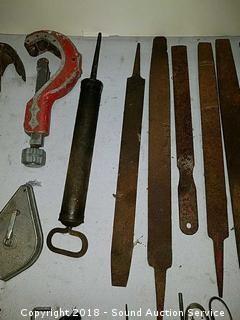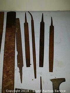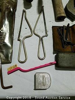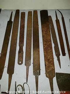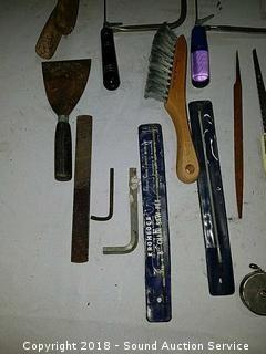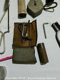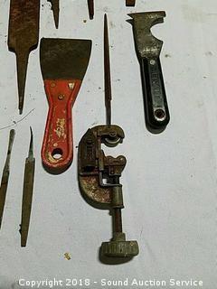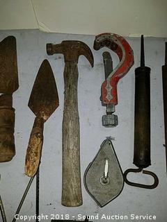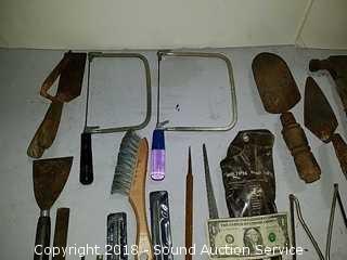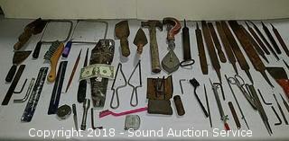 Tons of old rustic antique items & tools! Includes, Antique Buffet, Waterfall Dresser, Tiger Oak Dresser, Old Steamer Trunks, Hand Tools, Power Tools, Saws, Antique 1906 Safe, Wood Block Pulley's, Vtg. oil Heater, Trading Cards, Early 1900's Ephemera & Photos, Old Knives, WWII Military Items, Coin Banks, New Elec. Stove Top, Antique Philco Record Player, Vises, Pony Keg, Bull Horns, Horseshoes & So Much More!!!