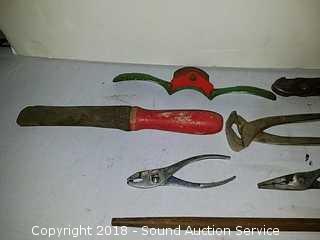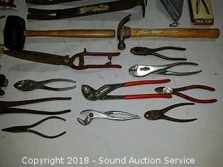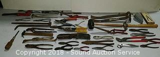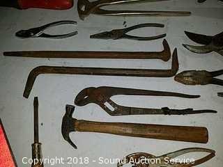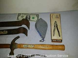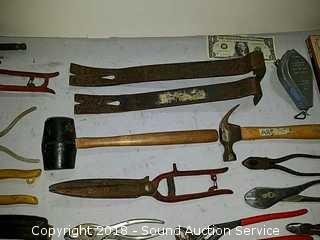 Tons of old rustic antique items & tools! Includes, Antique Buffet, Waterfall Dresser, Tiger Oak Dresser, Old Steamer Trunks, Hand Tools, Power Tools, Saws, Antique 1906 Safe, Wood Block Pulley's, Vtg. oil Heater, Trading Cards, Early 1900's Ephemera & Photos, Old Knives, WWII Military Items, Coin Banks, New Elec. Stove Top, Antique Philco Record Player, Vises, Pony Keg, Bull Horns, Horseshoes & So Much More!!!