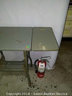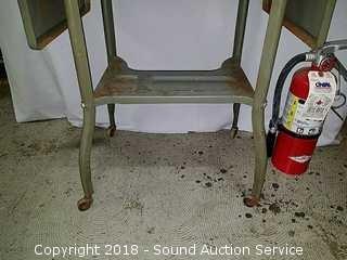 Lot #0012: Vtg. Drop Leaf Metal Rolling Cart w/Casters