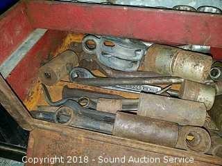 Lot #0112: Vtg. Toolbox Loaded w/Sockets, Wrenches & More